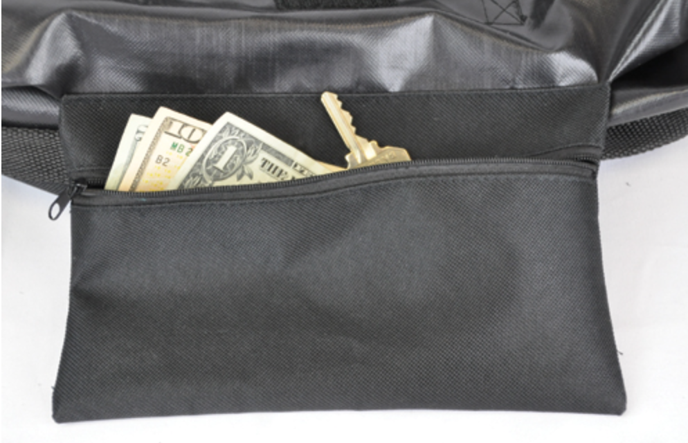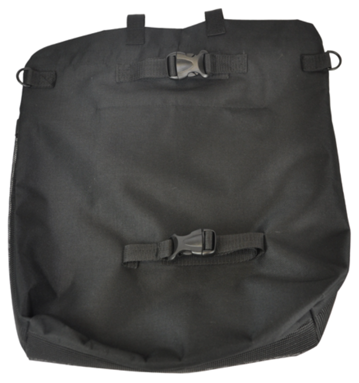 Universally sized to fit most manufacturers knee scooters * Effective, practical and convenient * An amazing mobility solution that allows the knee scooter user to conveniently and comfortably take their belongings with them and access them easily * Two large pockets with hook and loop closures hold all your belongings, including larger items such as laptops, purses, books, etc., unlike a traditional basket * Tested to hold up to 25 lbs of personal items * Simple to attach with quick-click buckles and adjustment straps - no tools required * Included shoulder strap makes this bag easy to carry when removed from the knee scooter * Internally hidden zippered 7" L x 9" W security pocket securely holds important items such as keys, wallets or money * Large main pocket dimensions: 16.5" L x 16" W * Mesh exterior pocket dimensions: 14" L x 16" W * Overall bag dimensions: 18" L x 16.5" W