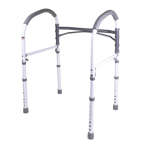 Stands on its own without installation, so it can be used for added safety and stability all over the bathroom * Easily fits around your toilet to provide safe support and assistance while sitting down or rising from the toilet * Stand-alone design allows safety rail to be used at the toilet or sink * No installation necessary * Tool free assembly * Provides safe support while siting or standing * Weight Capacity: 300 lbs. * Product Weight: 9.65 lbs * Product Dims: (h x w x d) 27" - 33" x 23.25" x 20" * Package Weight: 9 lbs * Package Dims (h x w x d): 23.5" x 17" x 4" * Attachable: No * Stand Alone: Yes * Height Adjustable: Yes *