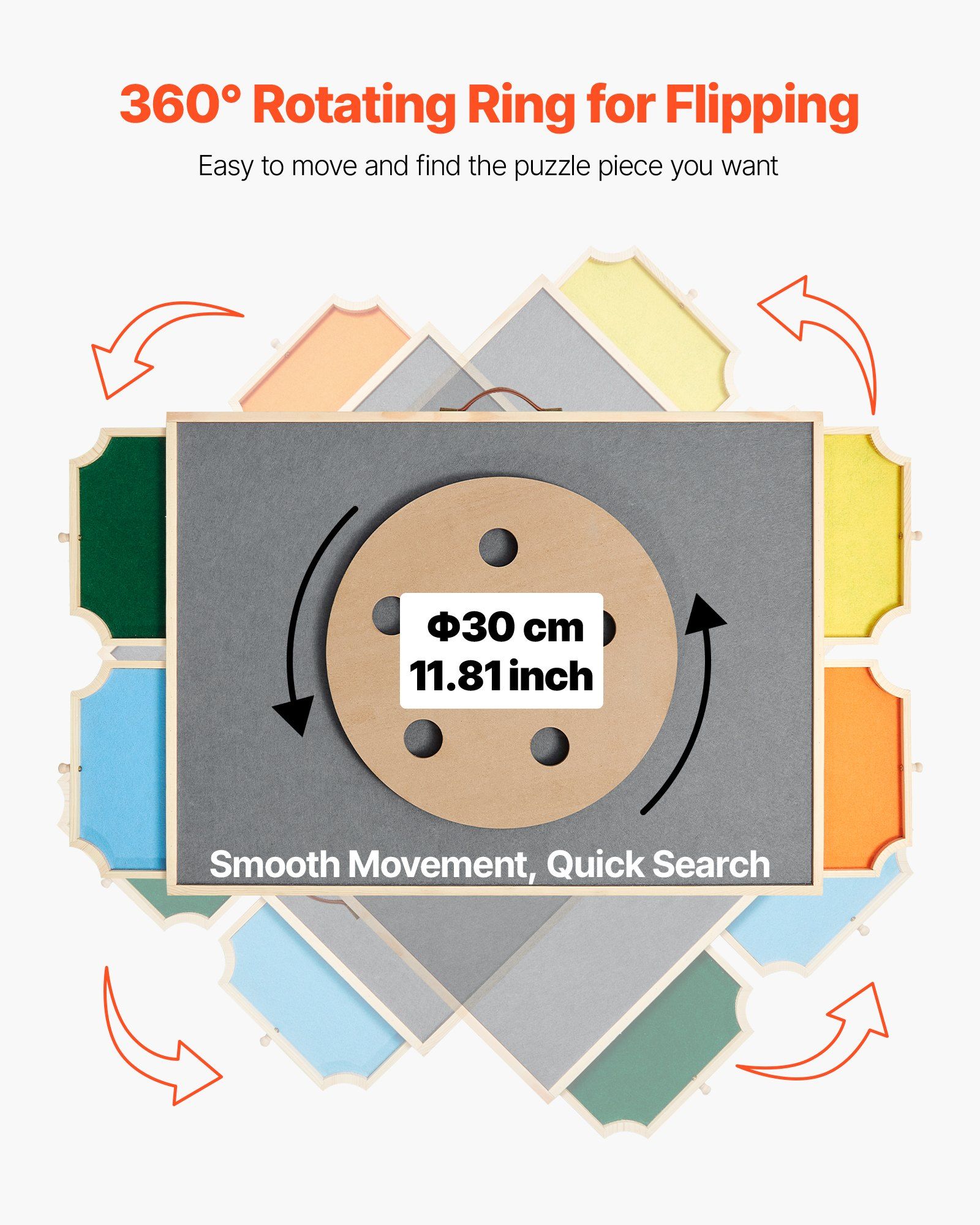 2.360° Rotating Base Ring: This portable puzzle tabletop allows smooth 360° rotation. With just a few seconds, you can effortlessly rotate the table to the desired position. It provides a convenient and fun way to play puzzle games
