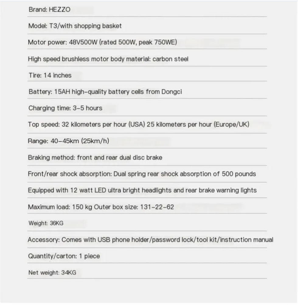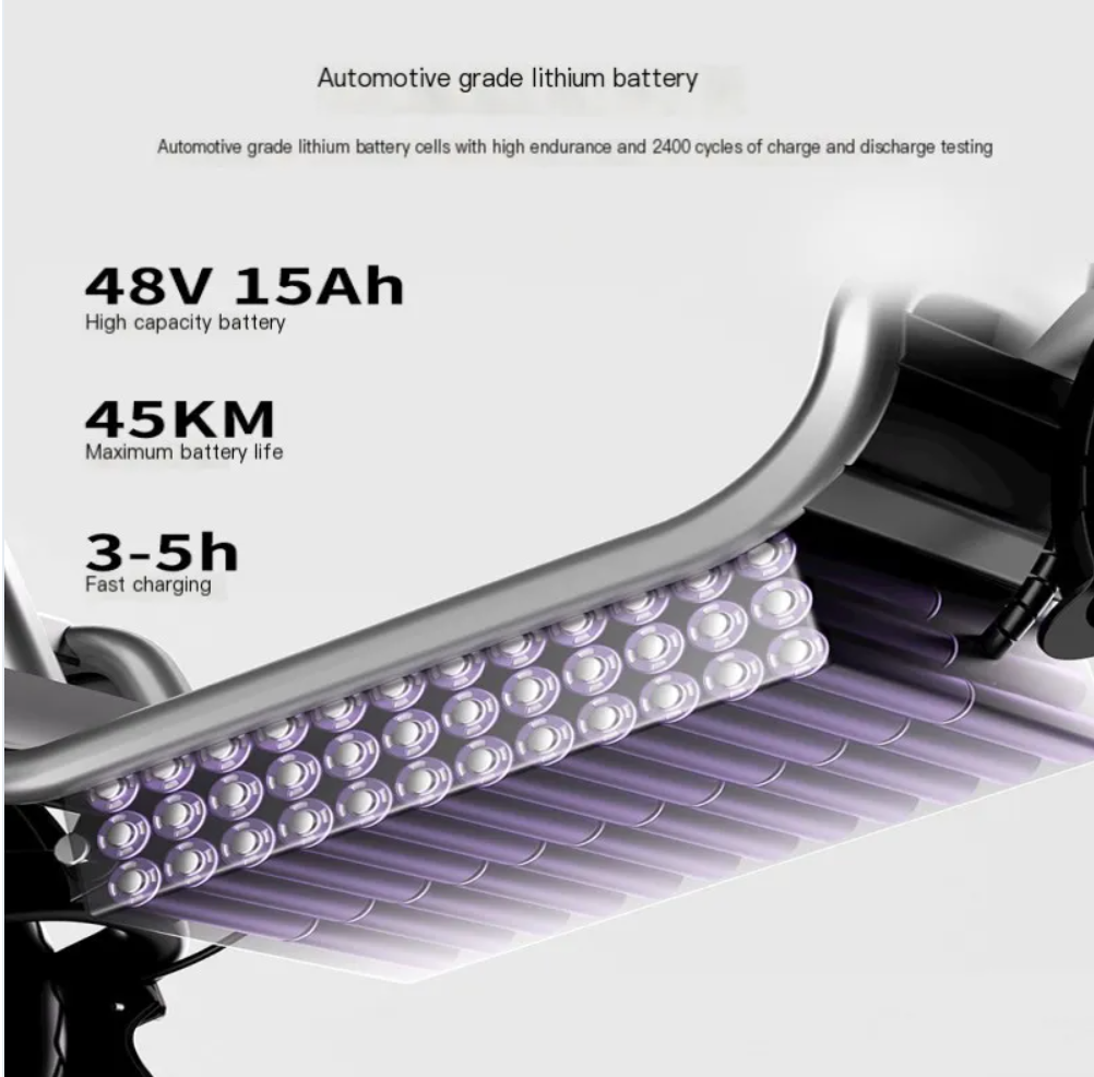 Top speed: 32 kilometers per hour (USA) 25 kilometers per hour (Europe/UK)Range:40-45km(25km/h)