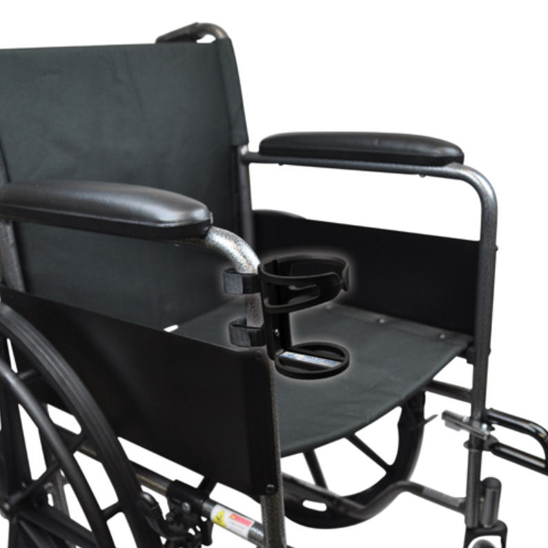Fits: Walkers, Wheelchairs, Rollators, Commodes, Canes, Crutches and more * Unique and innovative design allows that Hold My Drink to fit on a range of sizes of round tubing * Holds a wide variety of diverse bottle and can sizes * Flexible upper portion and firm lower portion holds bottles securely in place * Outer hook and loop straps provides strength and additional security for heavier bottles * Inner special foam style holding strips yield additional grasp * Tool free * Simple to attach and adjust *